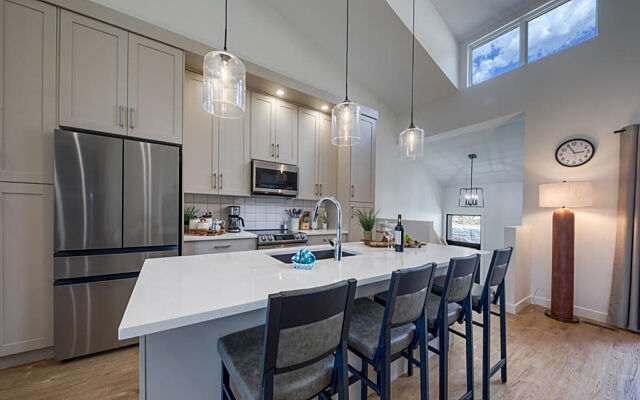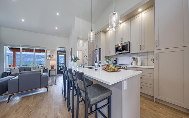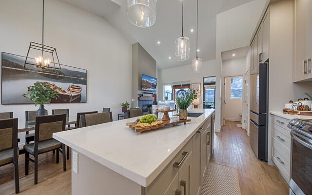 Step inside and enjoy over 1,600 square feet of thoughtfully designed living space across three levels. The top floor is the social hub, with a fully equipped kitchen, a dining table for 8 and breakfast bar for 4, a cozy living room with an electric fireplace and Smart TV, and access to three spacious decks—one with a private BBQ and dining set.
